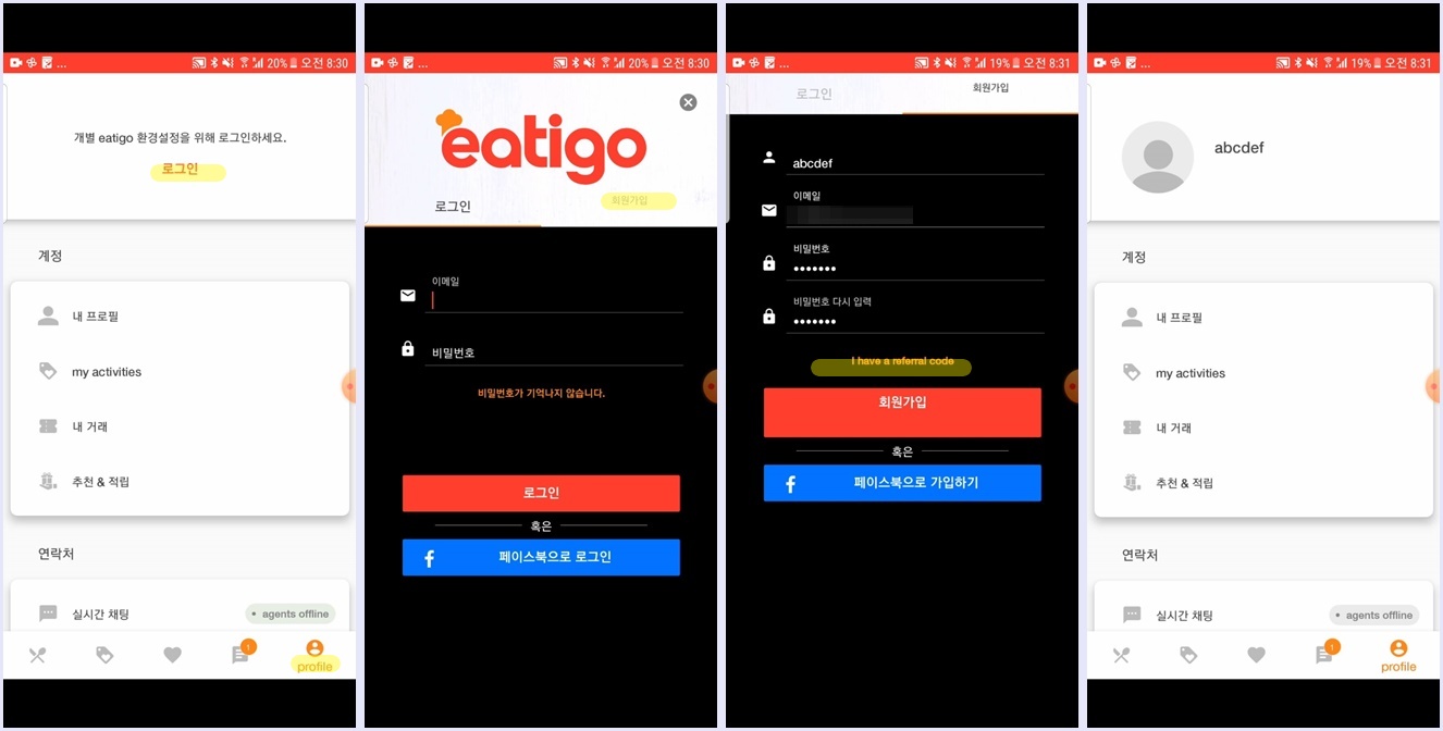 2. 어플리케이션 실행 및 가입 : 어플리케이션을 실행하고 아래 순서대로 가입하시면 됩니다.