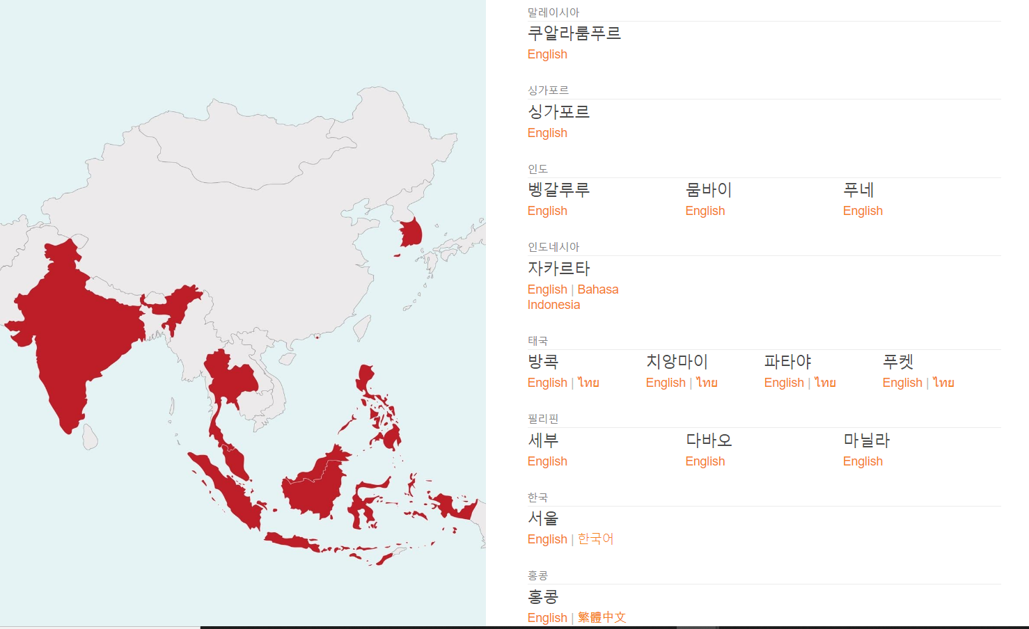 이티고는 아시아 no.1 레스토랑 예약 플랫폼 어플리케이션 입니다. 동남아시아에서 주로 사용 가능한 어플로 아쉽지만 모든 나라, 모든 도시에서 사용할 수 있는 것은 아닙니다. 아래 그림에 나와 있는 나라의 도시에서만 사용이 가능하며, 예를 들어 태국의 경우 방콕, 치앙망, 파타야, 푸켓에서만 사용 가능합니다.