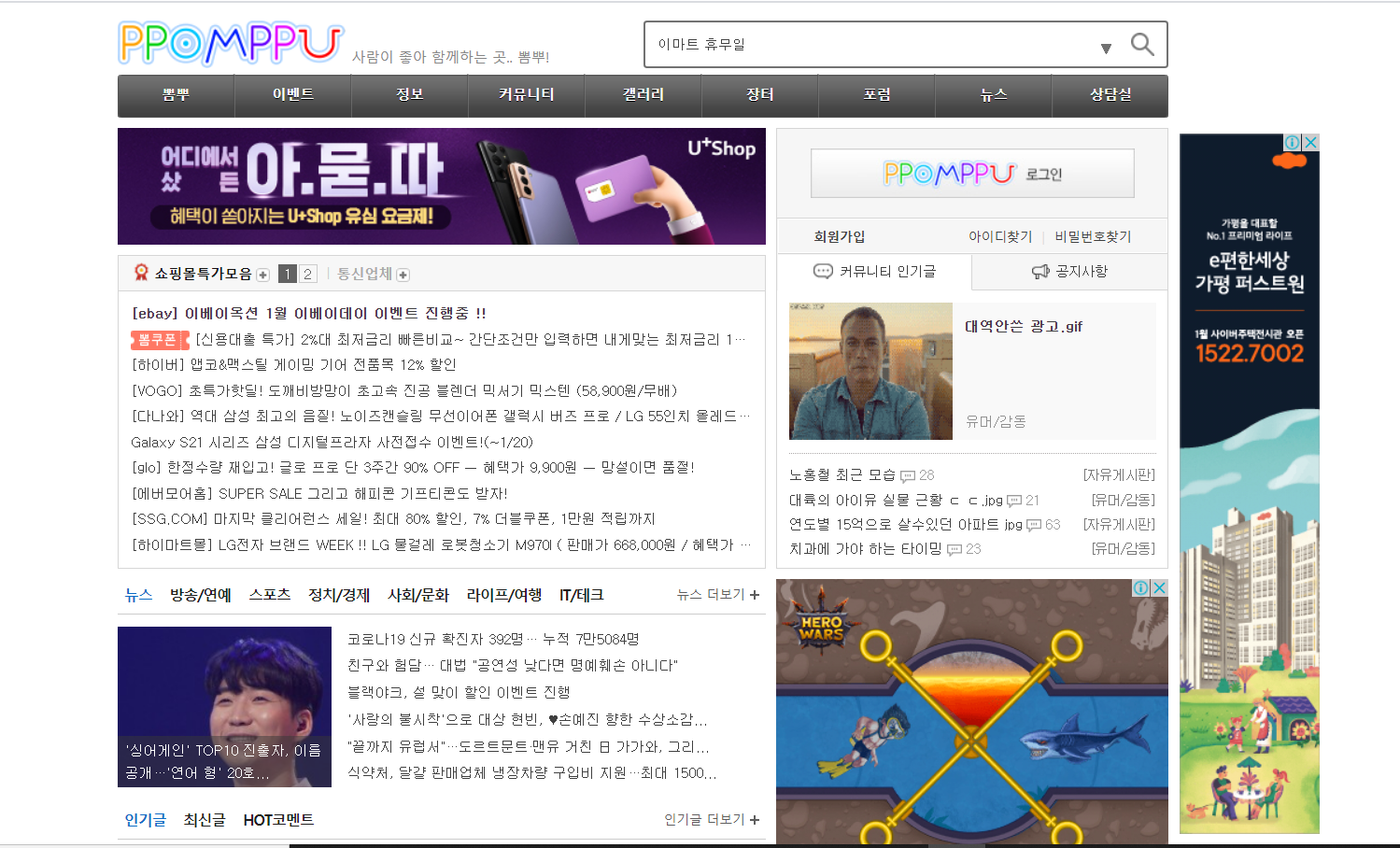 요즘 많이 유행하는 블라xx 어플이나 인터넷 카페에서도 관련 정보를 많이 찾을 수 있겠지만 일반적으로 가장 사용되는 사이트는 역시 뽐뿌일 것입니다.