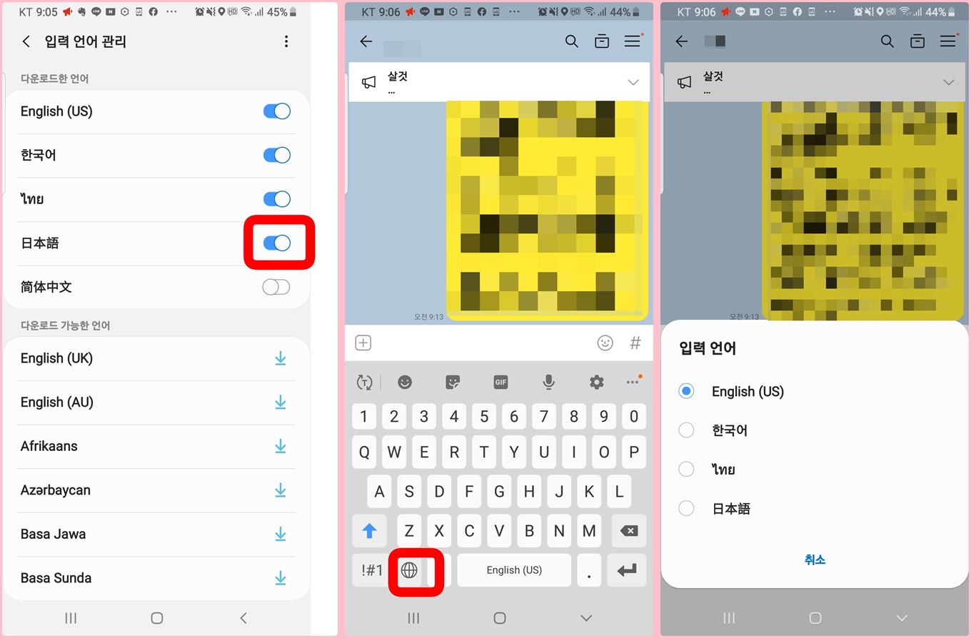 자주 사용하는 언어가 아니라면 핸드폰으로 키보드 자판 입력할 때마다 언어를 바꾸는 것이 번거로우실 수 있습니다. 삭제 방법도 무척 간단합니다.