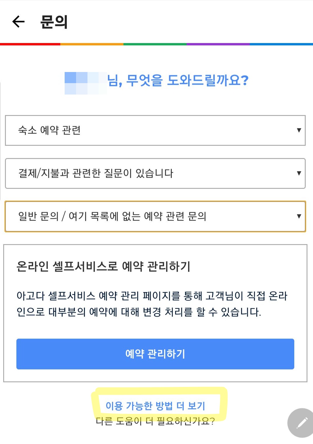 홈페이지 하단에 위치해 있는 문의 버튼을 클릭하고 상담하고자 하는 주제를 찾은 후 더보기 옵션을 클릭하면 마찬가지로 채팅상담, 전화 연락, 이메일 연락 등이 가능합니다. 보통 급한 경우가 많을 테니 바로 전화하는 게 편하시겠지요? 한국 번호로 전화하면 다행히도 한국인 직원과 한국어 상담이 가능합니다. 하지만 너무 늦은 시간에 전화하면 영어만 상담 가능하더라고요. 그럴 경우 이메일로 상담해도 될 것 같아요. 저 같은 경우는 늦은 밤 이메일 보내고 아침에 다시 전화를 걸었는데 이메일 내역을 이미 다 확인하고 조치 중에 있더라구요. 이메일로도 빠른 피드백이 가능해 보였습니다.